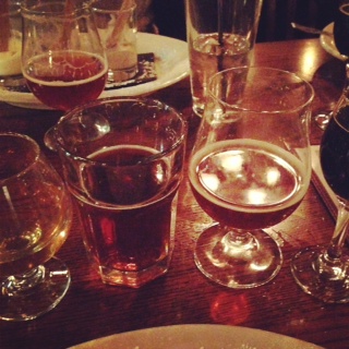 Yesterday was Rob’s birthday, and since we had such a great meal the last time we went, we decided to head to John Harvard’s again for their Wednesday evening “Brewer’s Prix Fixe” dinner. This month’s featured item was lamb, and the menu looked good. My sister and her boyfriend joined us, and we all did the menu with beer pairings. (John Harvard’s brews all their own beer, and it’s delicious, but if you don’t care for beer you can do the menu without the pairings.)