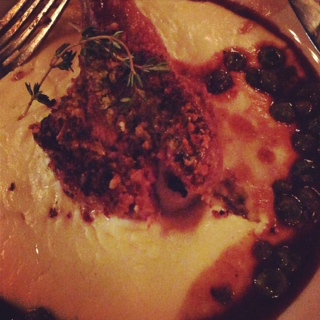 The main course was a roasted, basil-crusted lamb chop atop a bed of truffle polenta, and although the menu said it came with fava beans, it was actually served with peas. Not a problem as they were really fresh and crisp. There was a nice au jus around the plate, too. The crust on the chop was delicious, and the meat was perfectly cooked and very tender. Another substitution for this dish was the beer pairing: instead of the Balrog Black I.P.A. listed on the menu, the waiter explained they were subbing with Redhead – a red ale with a slight ginger finish. Although I’m not sure it was a better pairing than the I.P.A. would have been, was a really good beer.