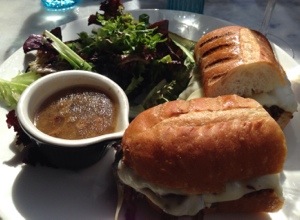 Searsucker’s chef, Brian Malarkey (Top Chef, season 3), describes the food there as “New American Classic”, which I wouldn’t disagree with given what we tasted. I ordered the French dip sandwich, something I would almost never select but this had a twist that caught my eye: rather than roast beef, it was made with braised short rib. Add to that carmelized onions and aged cheddar, and I was in heaven. Each bite was decadent, messy and delicious. All sandwiches are served with a side of greens, very lightly dressed in olive oil with a drizzle of really good balsamic vinegar, and a spear of habanero pickle which was a tremendous foil for the very rich sandwich.