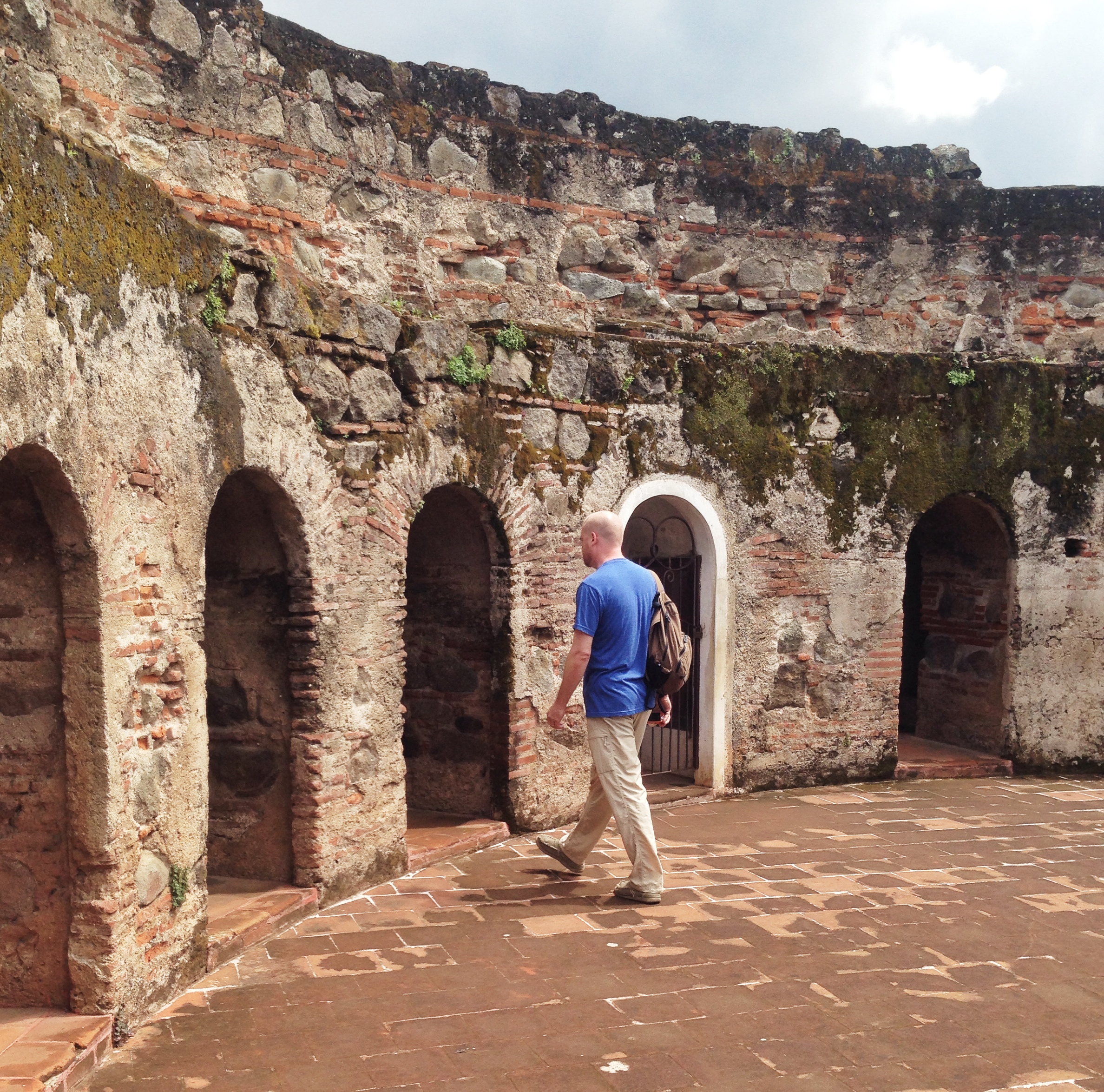 After breakfast we decided to head out to San Jeronimo, and then La Reccolleccion,one of the largest of the ruins. Surrounded by well-maintained gardens, this massive site was probably the most “ruined” in some ways — giant pillars and walls lay everywhere, slowly being reclaimed by nature. One of the most fascinating things was that despite the obvious potential hazards, there were no prohibitions from walking or climbing anywhere.