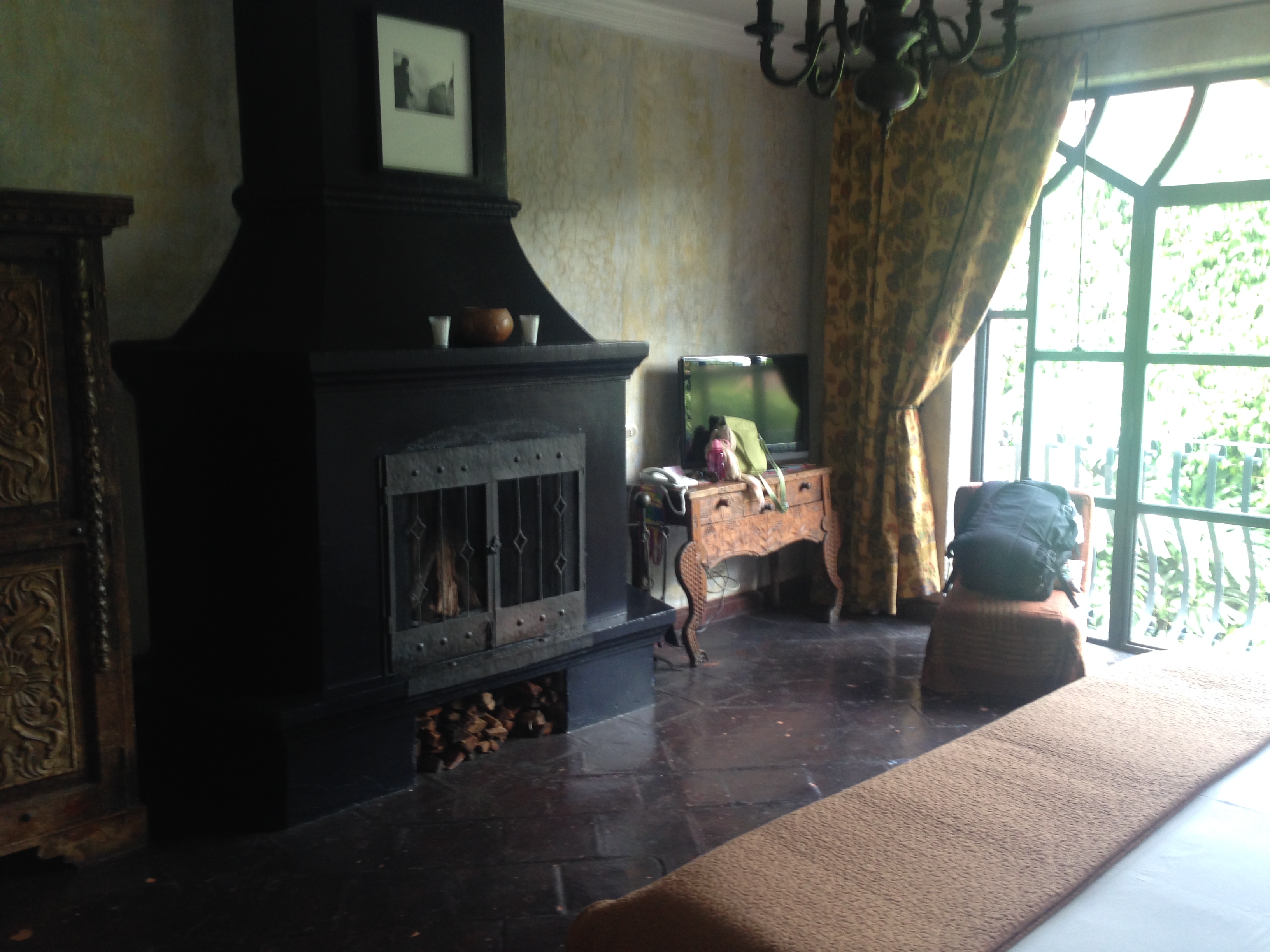 Before dinner in the hotel, we wandered into the (very tiny) bar/lounge area, and enjoyed some wine in front of a fire. Soon, we were drawn into a conversation with the three others in the bar, one of whom we discovered later was the hotel owner, Bruce, a lovely and interesting man. We enjoyed talking with him and the other couple about travel, where we’d been on this trip and others, where they recommended we try next. It seemed nearly everyone we met on this trip was an expat or hoping to become one soon. The other gentleman was an expat Canadian who had a small lodge in Honduras; he gave us his card. Perhaps someday…