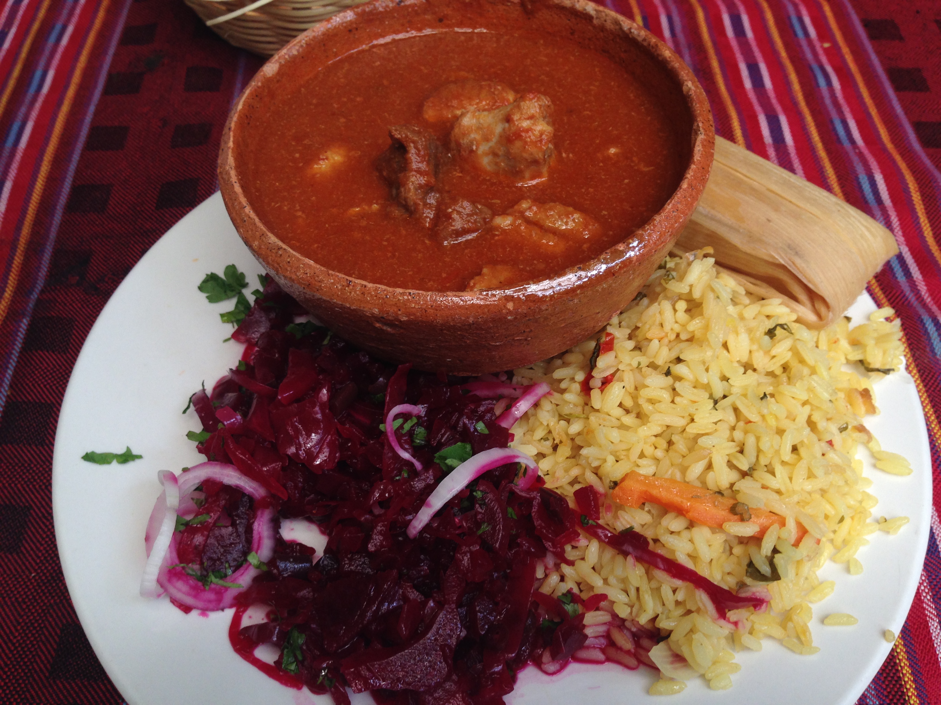 We both chose the subanik, a spicy stew of pork, chicken and beef in a rich sauce. I selected rice and a beet dish that looked interesting, and Rob went for rice with guacamole; everything came with warm, freshly made tortillas and tamales. Next to the pepian lunch in Santa Cruz, this was probably our second favorite Guatemalan meal.