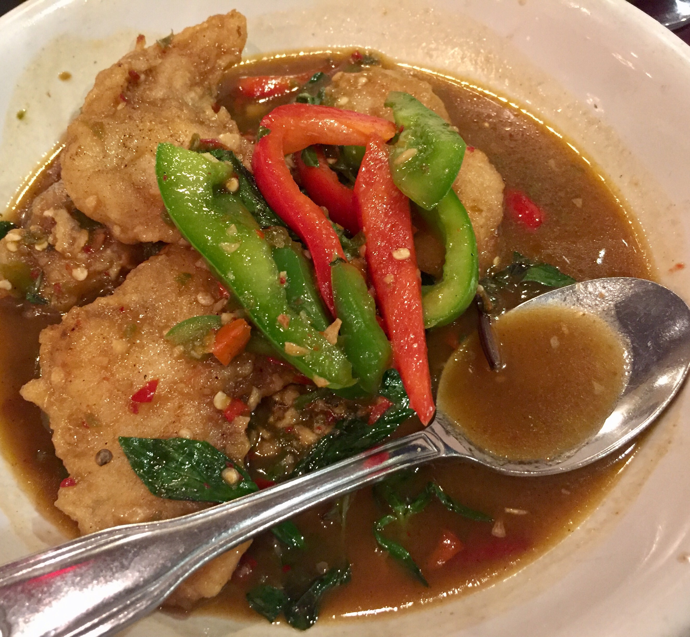 Rob got a catfish dish in a bright and spicy sauce of lime, chilis and basil.