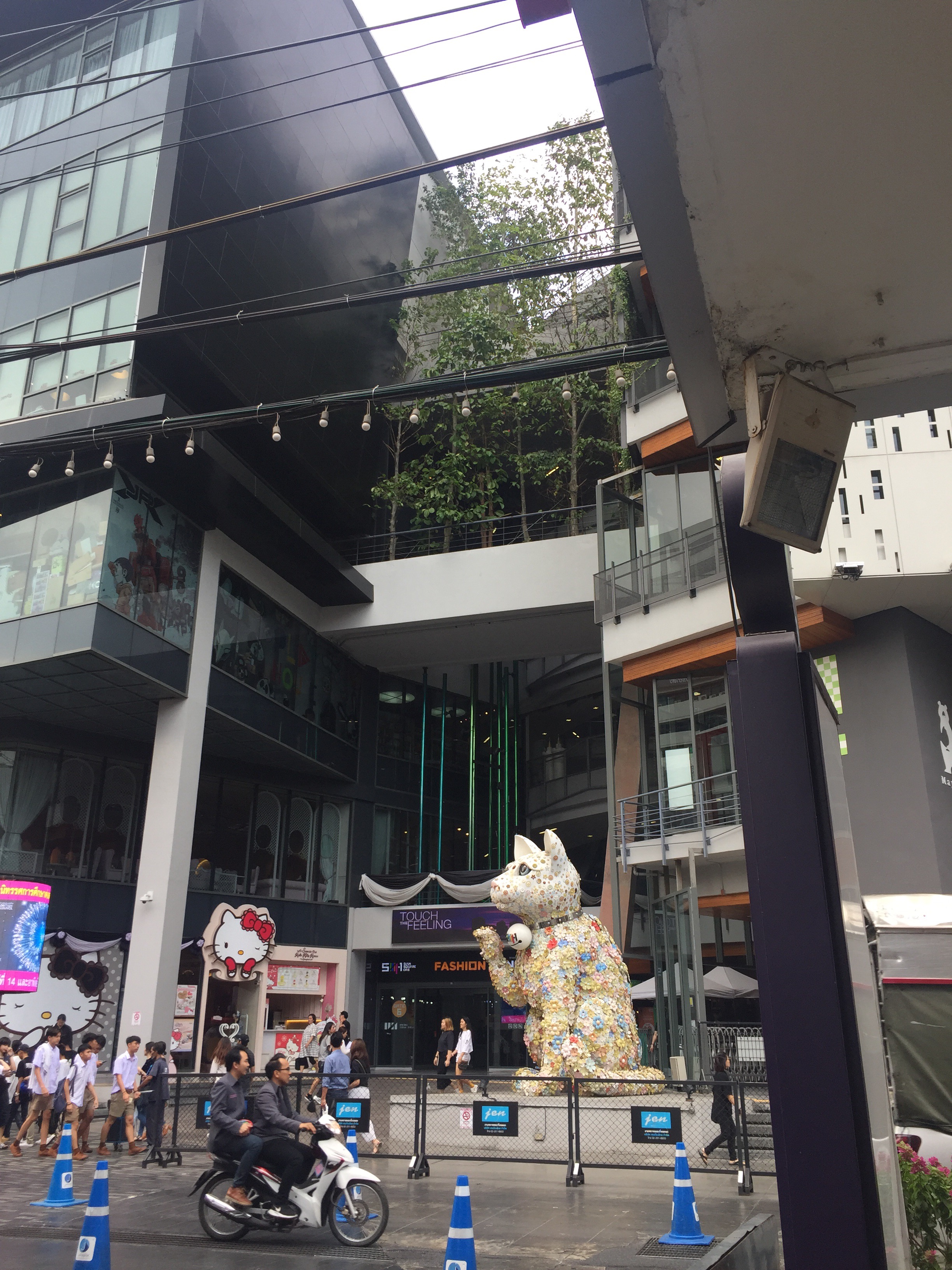 After lunch, we decided that since we were in the neighborhood, we should check out MBK–one of those giant shopping malls you’ve probably heard about. It was seven or eight floors of bedlam, with escalators in different locations on each floor making our planned trek to the “food island” on one of the top floors quite challenging. I don’t know how people deal with shopping here–though it did appear you could buy just about anything in the world in this city-within-a-city. Not being fans of malls AT ALL, we did a quick tour, just to say we’d seen it, and headed back to the relative calm of the Bangkok streets.