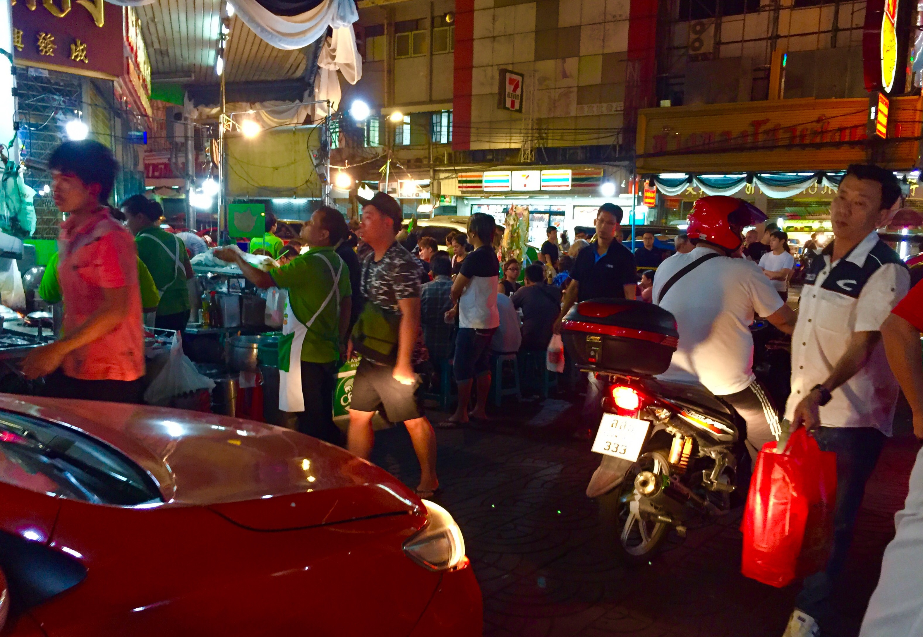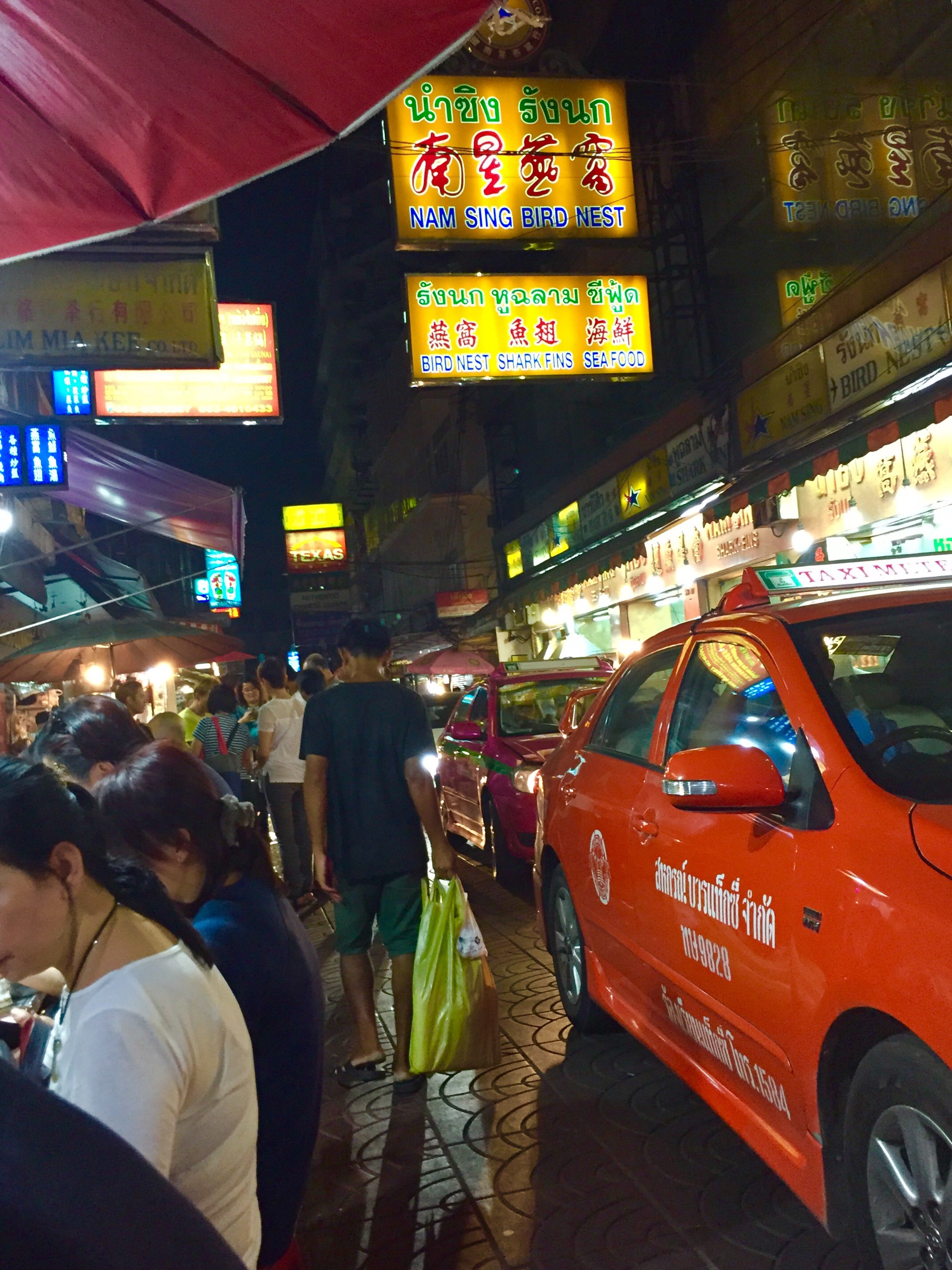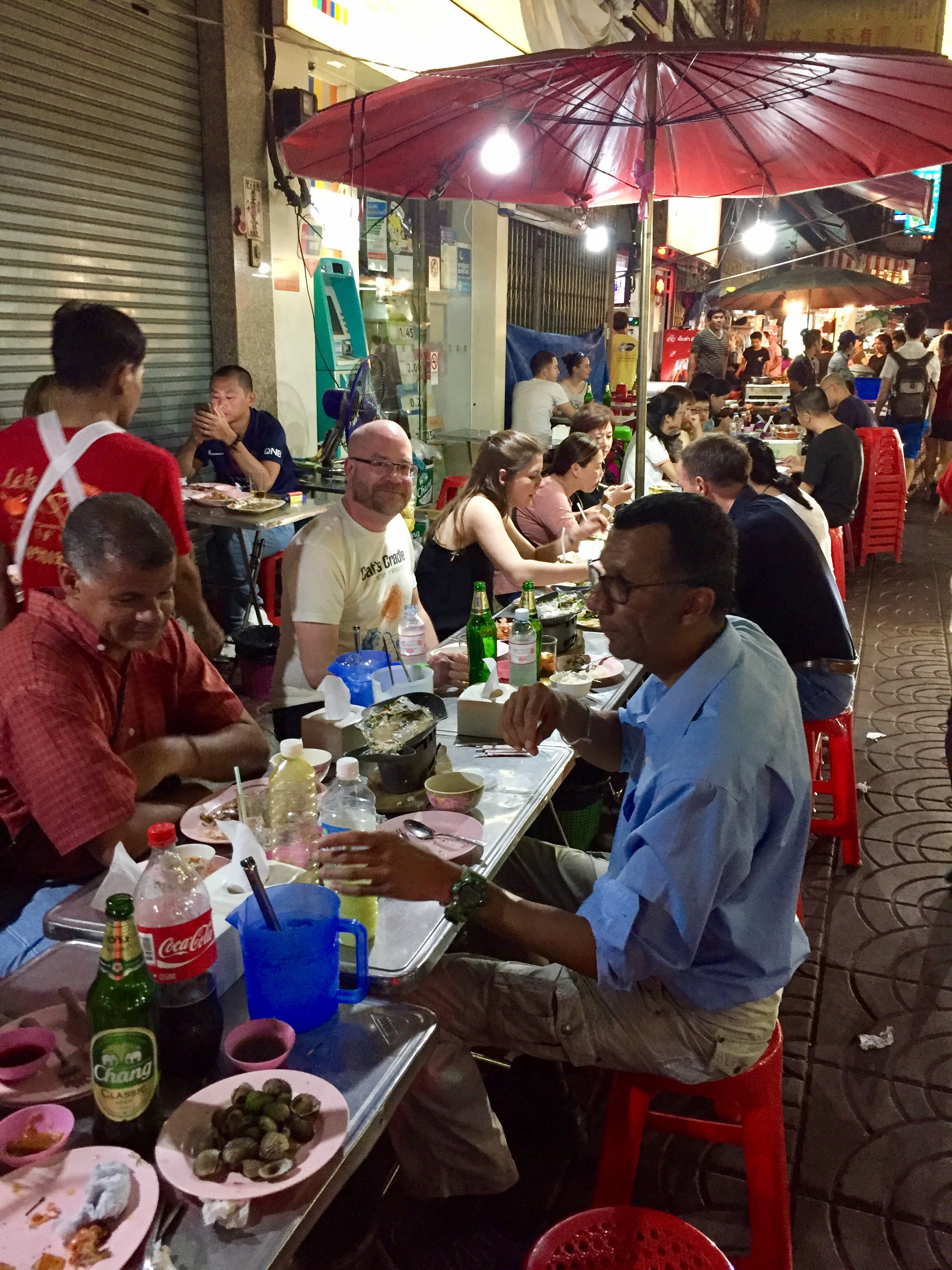 That night, we decided to try to grab a spot at one of the two seafood places about a block up Yaowarat from our hotel. While both are technically restaurants, with an indoor kitchen, plumbing, etc., they feel very much like street food stalls as there are endless tables set up along the (very busy) road with squat plastic stools. Not for the faint of heart! You wait your turn until one of the servers who seems to be running frantically around but who really has everything under control tells you to sit and points at the stools for you.