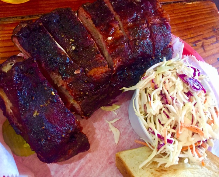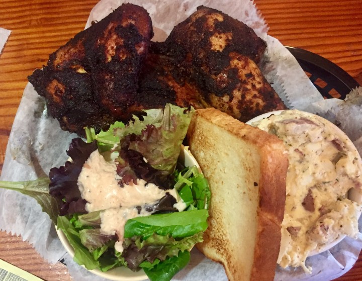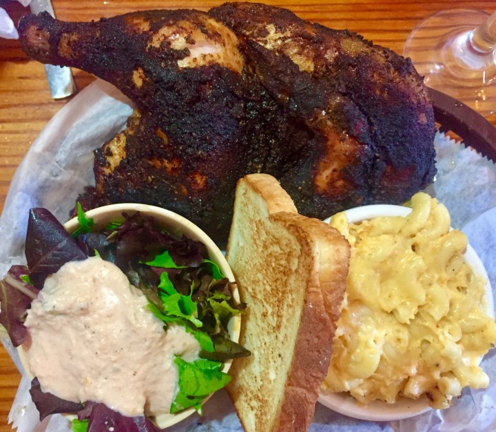 The ribs were amazing: meaty, fall-off-the-bone tender. But really, the chicken was the star, everyone agreed. Juicy, with an unbelievably flavorful dry rub, and pulled off the bone effortlessly. It didn’t need sauce, although there were several on the table, all clearly house-made.