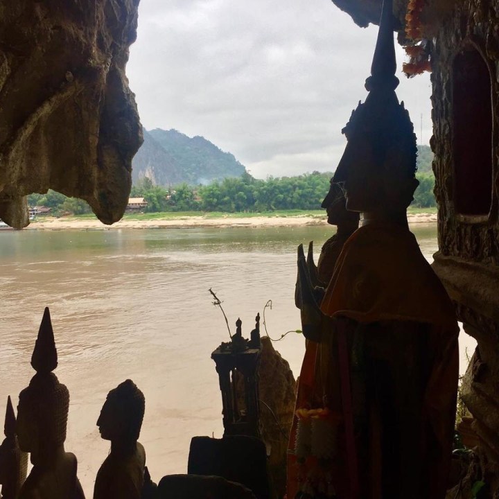 The first day we stopped to see the Pak Ou Caves, set in a limestone cliff a steep climb up from the Mekong, where locals have been leaving Buddha statues for hundreds of years.